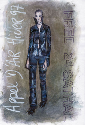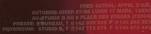 Casting by Maïda, music by Eric Pajot, hair by Barnabé, make-up by Carole Lasnier, jewels by Agathe Saint Girons and Erik Halley, coats of mail by Simon Azoulay, boots by Karine Bonneval, embroidered clogs by Fred Sathal.