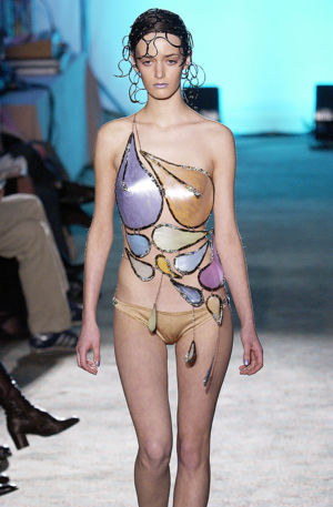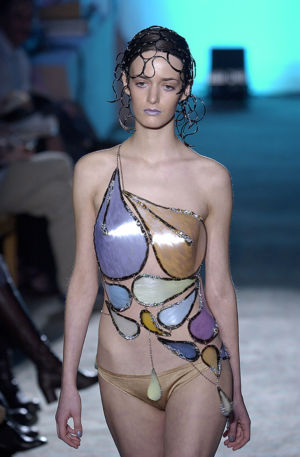 Casting by Sophie Demarcq, coordination by Franck Nasso, music by Punky Julien, hair by Laurent Philippon, make-up by Tracy Gray, thermoformed plastic for jewel swimsuits by Simon Azoulay, graphic design on invitation cards by Adam Love.