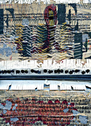 In the beginning was a trip to Rajasthan in 2007, more particularly to Udaipur where I settled myself, a view over the lake, a terrace on the roof, each day dedicated to the designing of a ‘Bigbang notebook of magic spells’, where I let my hand go and be renewed and my imagination flow like pouring liquid. Once more, the title is obvious, means original desire, black hole, space-time continuum, tidal current, galaxies, strips of materials, welkin, expanded and not static world, gravitational waves, dream landscapes. Black, explosion, unfinished presences, scattering, division, the elements get nearer one another, look for one another, mate, white. The illusion of a butterfly, a rock, a beast, a fear, a tree.