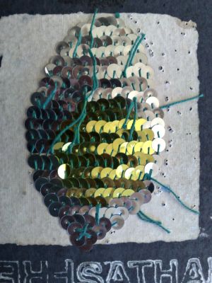 I design the ‘Golden Begonia’, a pattern embroidered with gold thread.